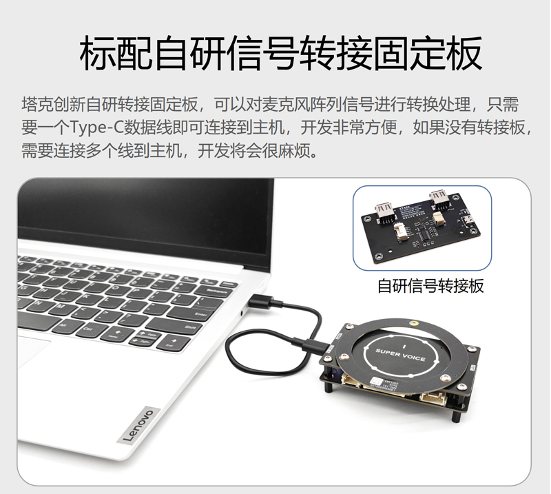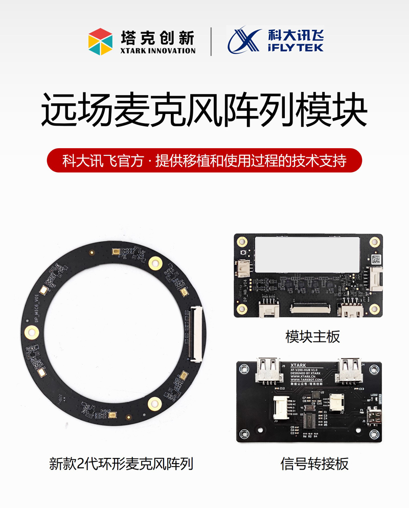 產品簡介:麥克風陣列可以實現聲源定位(分辨率1)并對語義進行解析,結合揚聲器可以進行語音播報。支持二次開發,提供詳細開發教程資料和使用應用例程,如TTS文字轉語音、會議定向錄音、實時翻譯和語音機器人控制等。同時支持接入訊飛語音云服務,可實現發音糾正、聲紋識別等豐富強大功能??蓱迷谡Z音智能家居、會議錄音、實時翻譯、機器人交互、口音矯正、交通工具智能座艙等領域。