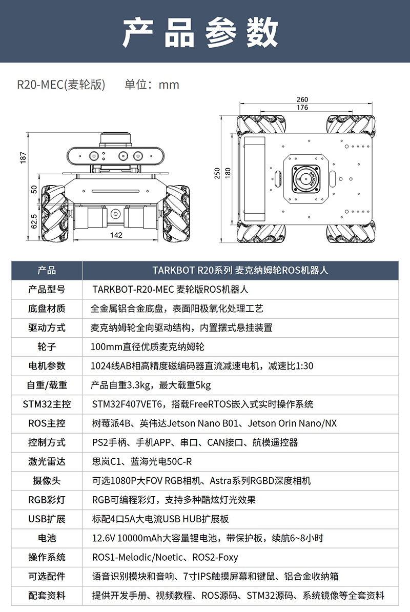TARKBOT-R20-MEC 麥克納姆輪ROS機器人