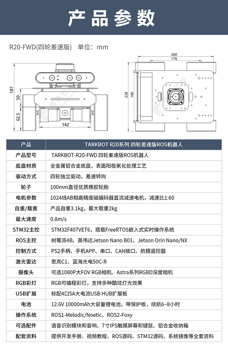 TARKBOT-R20-FWD 四輪差速ROS機器人